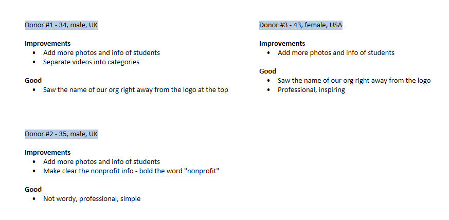 Some donors wanted more pictures and reviews of students benefiting from the donations.
