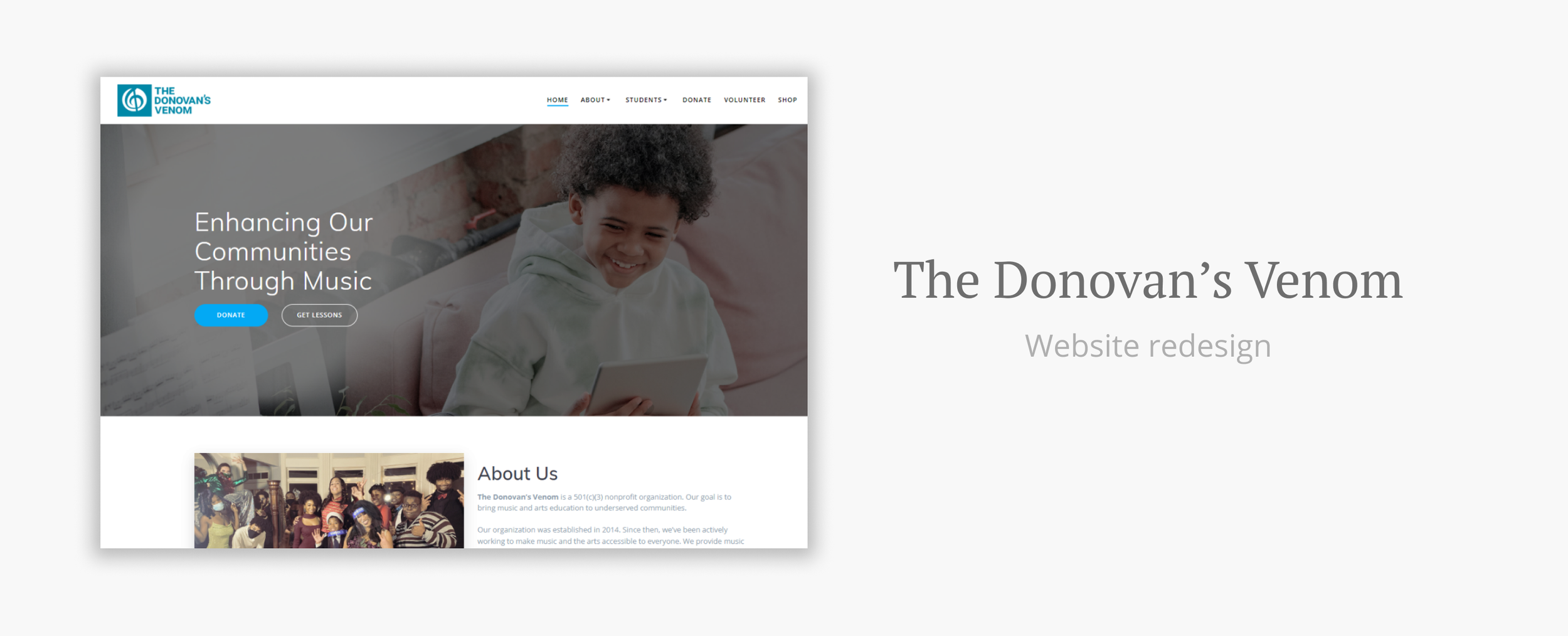 The Donovan’s Venom was hosted on Wordpress with a theme that had limitations. Theme customization was rather narrow. I worked to redesign the website based on what the account would allow me to do.